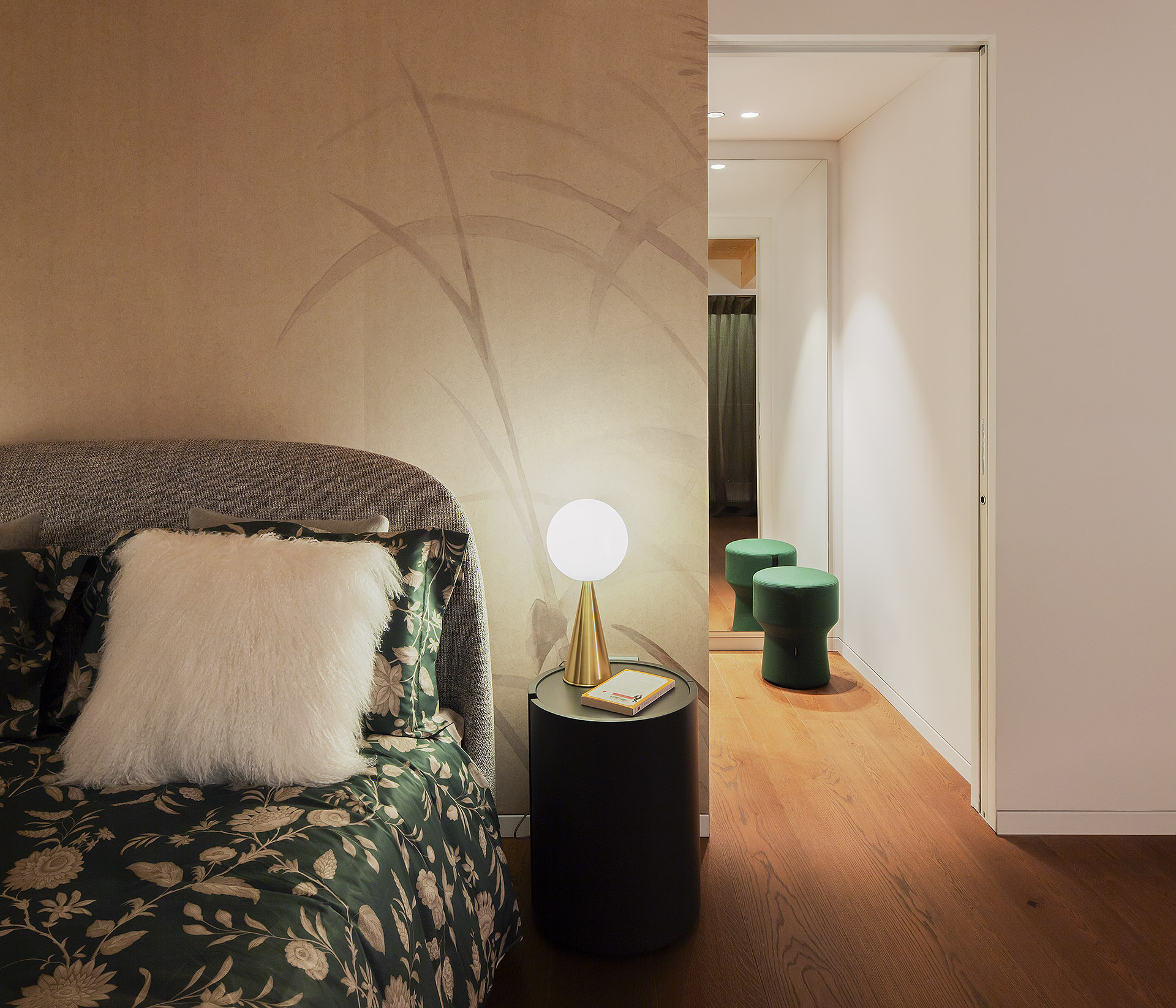 Inside one of the most modern and iconic buildings in the heart of Madonna di Campiglio, this interior design project has crafted a space that lives in perfect harmony with its natural surroundings. The apartment, poised between the vibrant pulse of the alpine town and the timeless stillness of the Dolomites, has been conceived as an elegant retreat—a warm, sophisticated setting from which to contemplate the landscape.