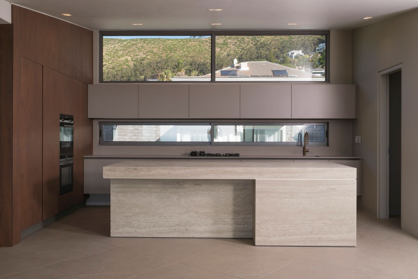 Natural light exposure was one of the project’s guiding principles: the building was sculpted to invite daylight throughout the day, ensuring interior spaces that are bright, warm, and constantly connected to the outdoors. The openings, carefully calibrated, are not mere windows but spatial devices that filter light, frame selected views, and give rhythm to the elevations.